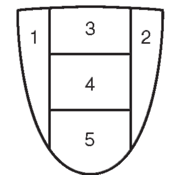Обследуемую поверхность зуба делят на 5 участков:
