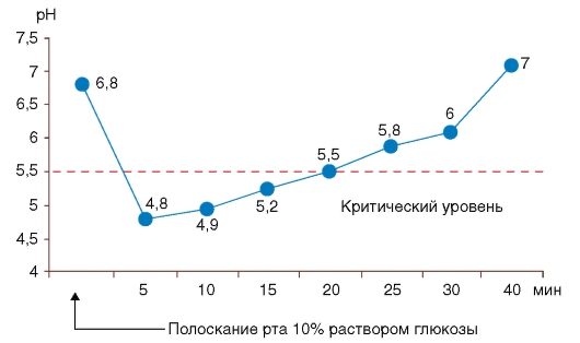 4) динамику изменения рН зубного налета под воздействием углеводов;