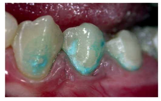 4 - окрашивание 3/4 поверхности коронки зуба;