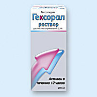 Препарат Гексорал в форме раствора для местного применения можно применять для полоскания полости рта и глотки только в том случае, если больной может выплюнуть раствор после полоскания.