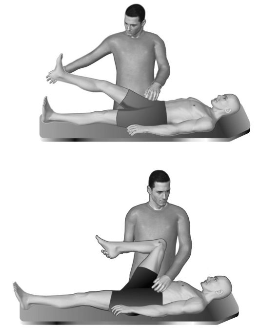 Рис. 8.14. Симптом Ласега (первая и вторая фазы). Объяснение в тексте.